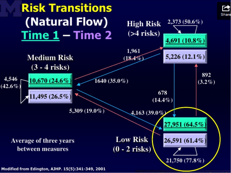 Dee Edington’s work found that expected natural migration is actually a deterioration in risk groups as people naturally flow to high risk.