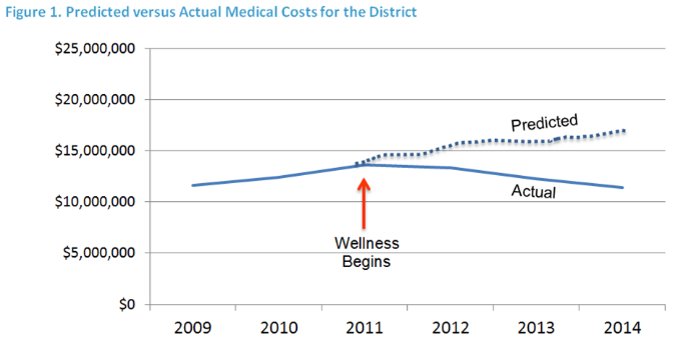 Not content with the warm welcome that scheme brought them, in 2015 they introduced a DNA-based wellness program and claimed a whopping $1464/participant in savings. What put the whop in that whopper were these two tidbits. These savings were achieved: