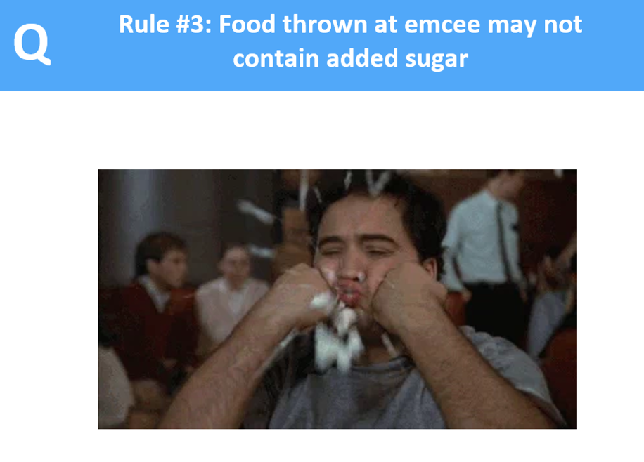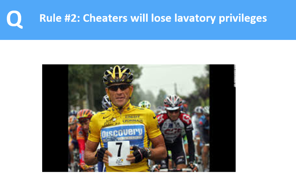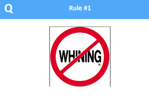 Coincidentally, when I run live health-and-wellness trivia contests, the first of our 3 rules is: No Whining. Seems to me that he would have just violated it. Indeed the only rule HERO hasn’t violated so far is #3 below. Not that I want to put ideas in their head.