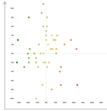 The displays don’t lend themselves to cut-and-pasting, since they are interactive (by state) and for some reason the axes are rather shy when you try to copy them. Nonetheless, worth noting is the slightly negative correlation between spending and quality in the employer population. (Quality on the left axis, spending on the bottom.) After a point, more healthcare only makes things worse. Or, as Quizzify says, “Just because it’s healthcare doesn’t mean it’s good for you.” Exhibit A being Interactive Health, of course. They are the most expensive wellness vendor, do the most tests, and send the most employees (45%!) to the doctor with “newly discovered conditions.” And yet they haven’t actually accomplished anything, other than getting exposed in the Wall Street Journal.