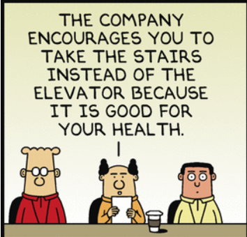 Incredibly, events unfolded almost exactly this way at Penn State during their well-publicized wellness debacle 5 years ago. It was even funnier in real life because while exercise does of course promote wellness, faculty and staff were very restricted in their use of campus recreational facilities. Making those free to employees and dependents was not part of their wellness initiative.