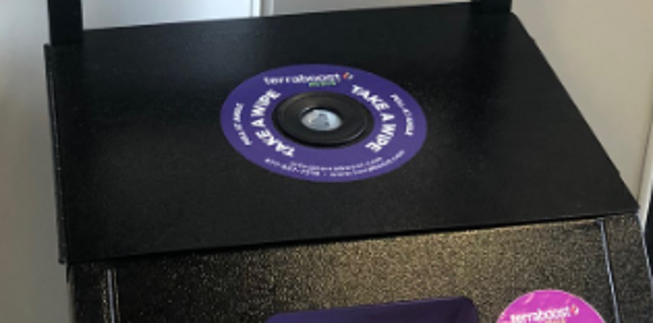 …so you can disinfect your hands before you wheel your cart out into the parking lot.