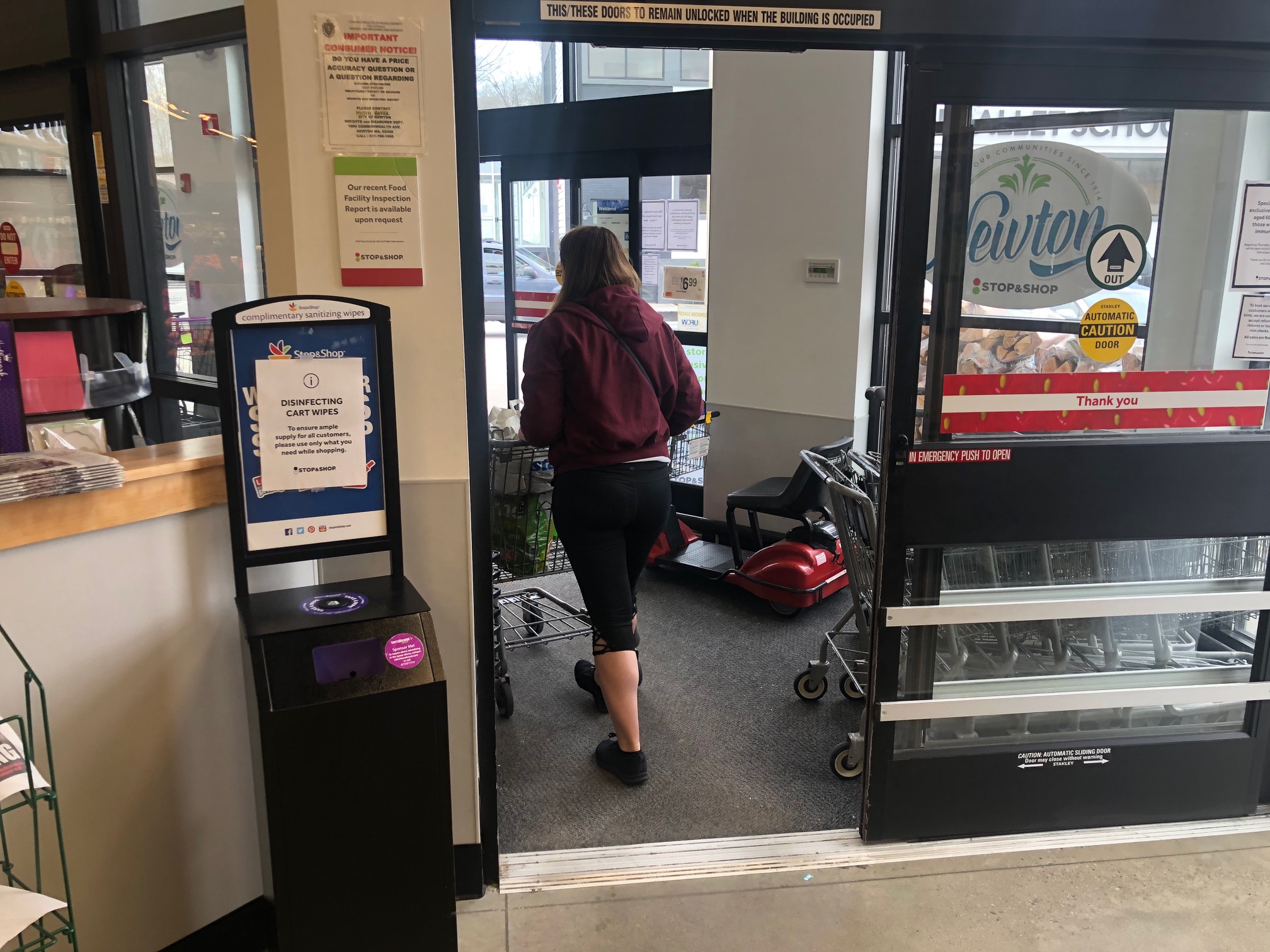 Fortunately, for just that reason, my local Stop & Shop thoughtfully provides a dispenser of wipes…