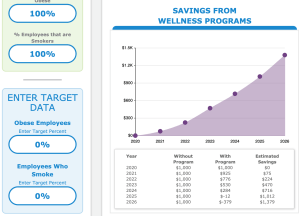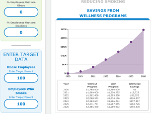 Let’s see how much they save in the best-case scenario. Enter 100% into the two fields “% Employees that [sic] are obese” and “% Employees that [sic] are smokers.”