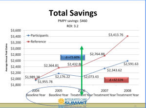 And we can credit Ron Goetzel’s brilliant analysis for that. He proved that participants will outperform non-participants even when there isn’t a program to participate in, as noted below, where the groups were separated in 2004 but the program didn’t start until 2006…at which point the participants had already dramatically outperformed the reference group.