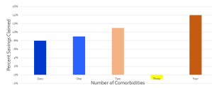 The percent increase in costs in the zero (or 0-1, in Accolade’s first cohort) morbidity group would therefore be the obvious proxy for the likely percent increase in costs of the comorbid categories if they did not have access to Accolade’s support.