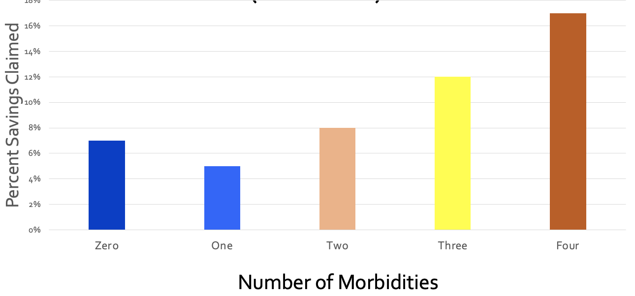 In this study group, as one would expect, the more morbidities a person has, the better job Accolade does at supporting them. And yet somehow they managed to save 7% by allegedly supporting the 64% of the population who mostly didn’t have anything that needed supporting.