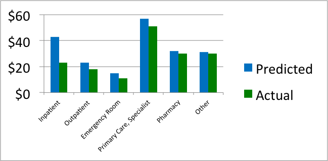 Comparison of actual vs. predicted spending per North Carolina Medicaid member per month in medical home, by category of service