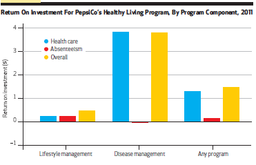 Here is what the article says about the financial impact of health promotion at Pepsico: ROIs well below 1-to-1, meaning a net financial loser, for health promotion. (DM, though, was a winner.)