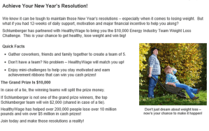 Once again, having been snake-charmed by HeathyWage, Schlumberger is offering a crash-dieting contest, starting today, January 22.