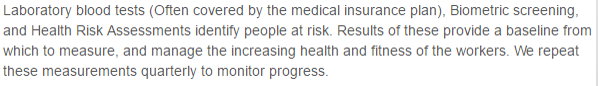 Quite the opposite. Tons of vendors obsess with hyperprevention because they are totally ignorant of the science and math involved. Our favorite is one called: “HEALTHIER is WEALTHIER and ASSOCIATES.” Along with the usually assortment of wellness industry THC-infused folderol (“our program, if followed diligently for a year, will decrease your employee health cost by as much as $24 for every pound of weight loss, an amount quoted by Dr Michael Roisen [sic] MD, Chief Wellness Officer and Chairman, Cleveland Clinic Wellness Institute”), they want to screen employees every three months. Don’t believe us?