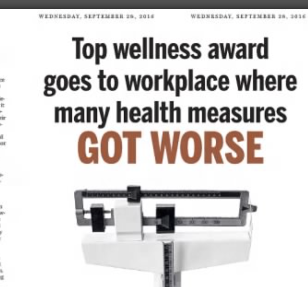 Although maybe that counts as a success in the wellness industry, because employees weren’t too badly harmed, as they are in a typical Koop-Award winning program. Congratulations to Mr. Goetzel!